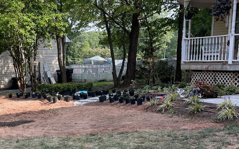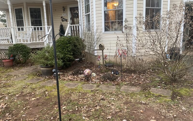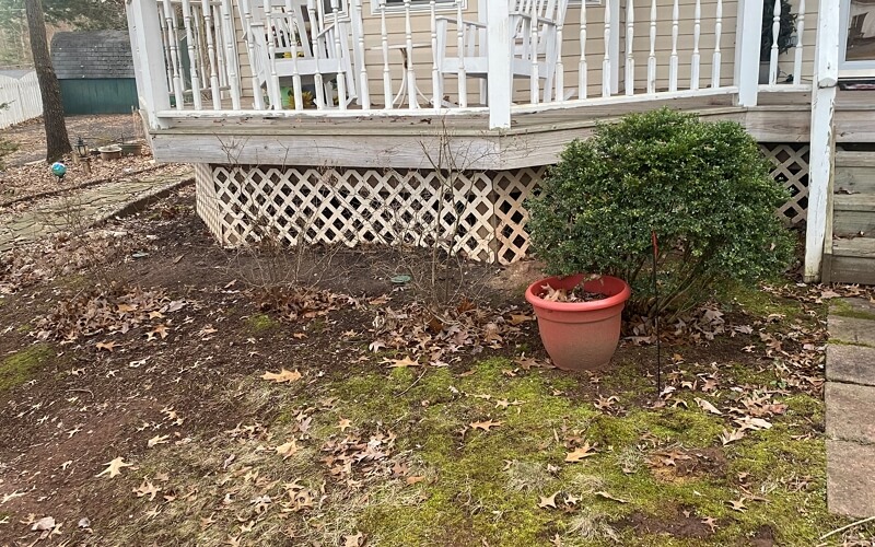 When we first visited this property at our initial consultation, the house and beds were covered in moss, weeds were growing in the yard and garden beds, and there were huge dirt spots throughout the yard. This property is in a small community tucked away and hidden by a larger, newer community. The client wanted certain plants incorporated, such as the Carolina-Allspice bush, due to its specific fragrance. The customer had a passion for gardening, but a very hard time getting around to it due to her occupation. With the excessive amount of shade that was on the property, their plants were not thriving, which was very frustrating for her.